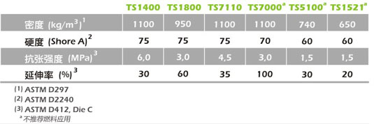 墊片材料 密度(g/cc) 粘接劑 最高間歇溫度(℃) 推薦使用截介質(zhì) 最低抗張強(qiáng)度 MPa)