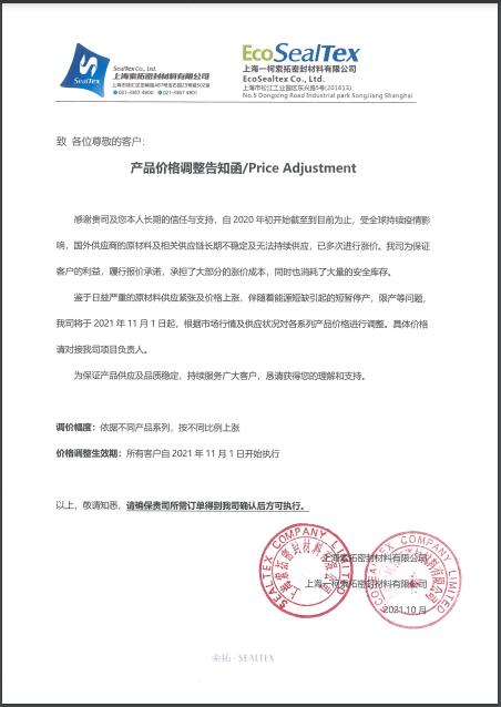 產(chǎn)品價(jià)格調(diào)整函/Price Adjustment