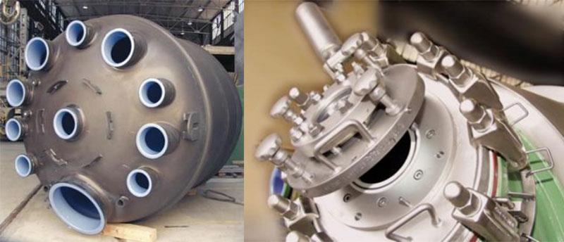 搪玻璃反應釜法蘭表面不平整,需要特殊類型的包覆墊。如果選擇錯誤的密封墊片或扭矩維護不當都可能導致搪玻璃設備的損壞。而反應釜噴嘴或人孔處強腐蝕性介質的微小泄漏也會滲入法蘭表面,破壞法蘭邊緣/末端的玻璃,進而破壞容器本身,因此該處密封顯得尤為重要。